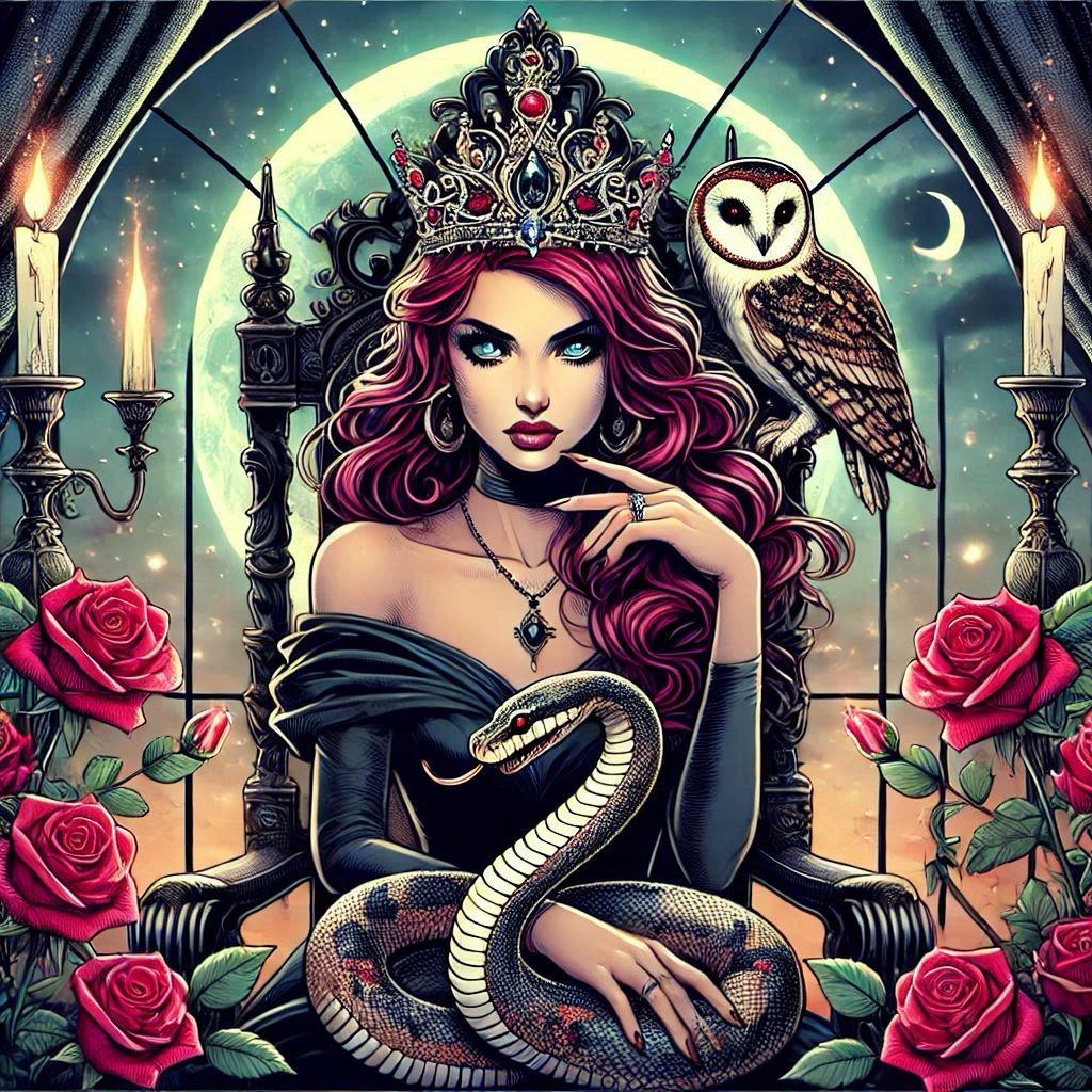I bow before The Queen of The Night and bestow long stem blood roses for your delight. Enthralling poetry of the venomous kind and what an entrance for the year of the snake (divine)! These images are beyond awesome, and I have always been obsessed with white owls (messengers)! Laura ❤ your beauty translates gloriously through your writing, tired and all! Thank you for your being and all that you do! May the dragons get well-needed vacations with exceptional menus and views! 😀 Love you !!!